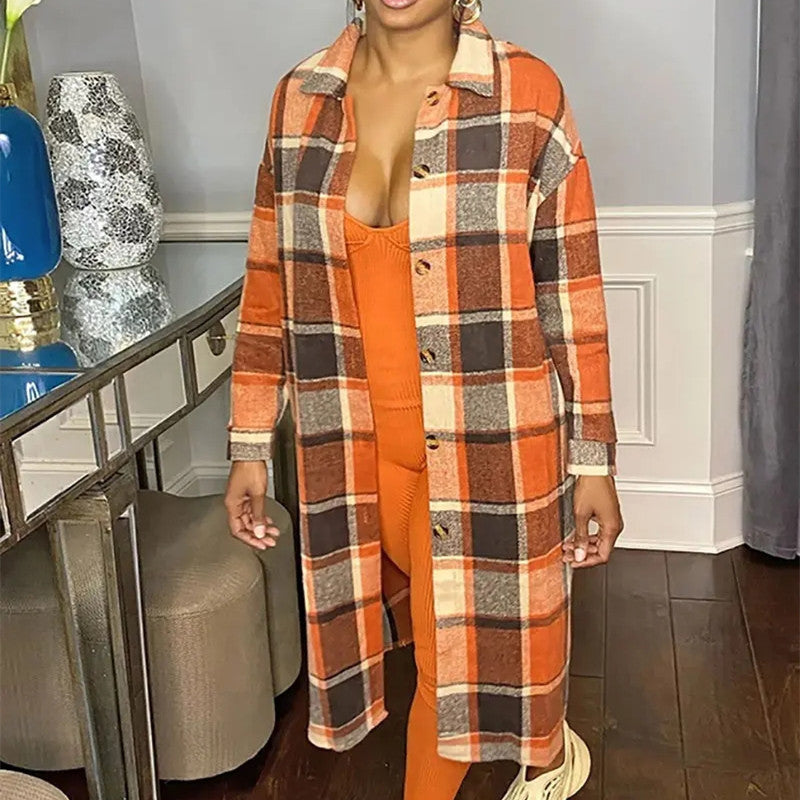 Manteau en Laine à Carreaux pour Femme, Mi-Long : Élégance et Confort !